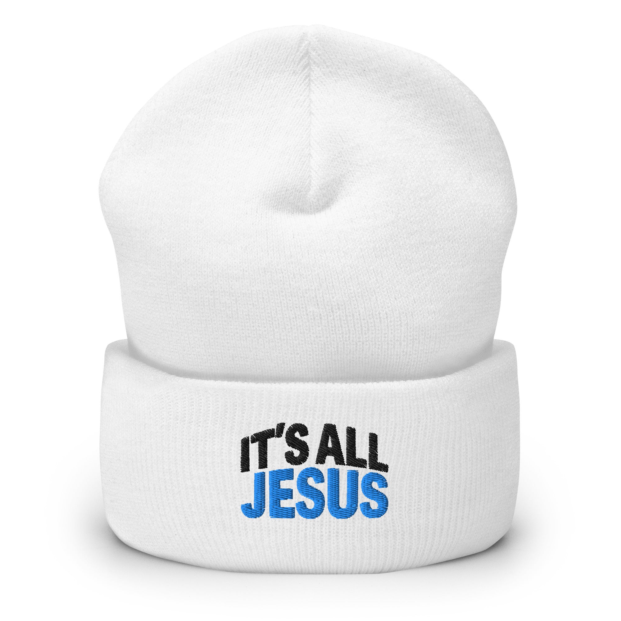 A bold two-sided design with the front declaring “It’s All Jesus” in a striking mix of black and bright blue typography, while the back features the scripture reference “Hebrews 12:2 KJV.” This design centers believers’ focus on Christ as the author and finisher of their faith, serving as a powerful reminder that everything begins and ends with Him. Its clean yet impactful style makes it both inspirational and visually striking for those who want to display their devotion.