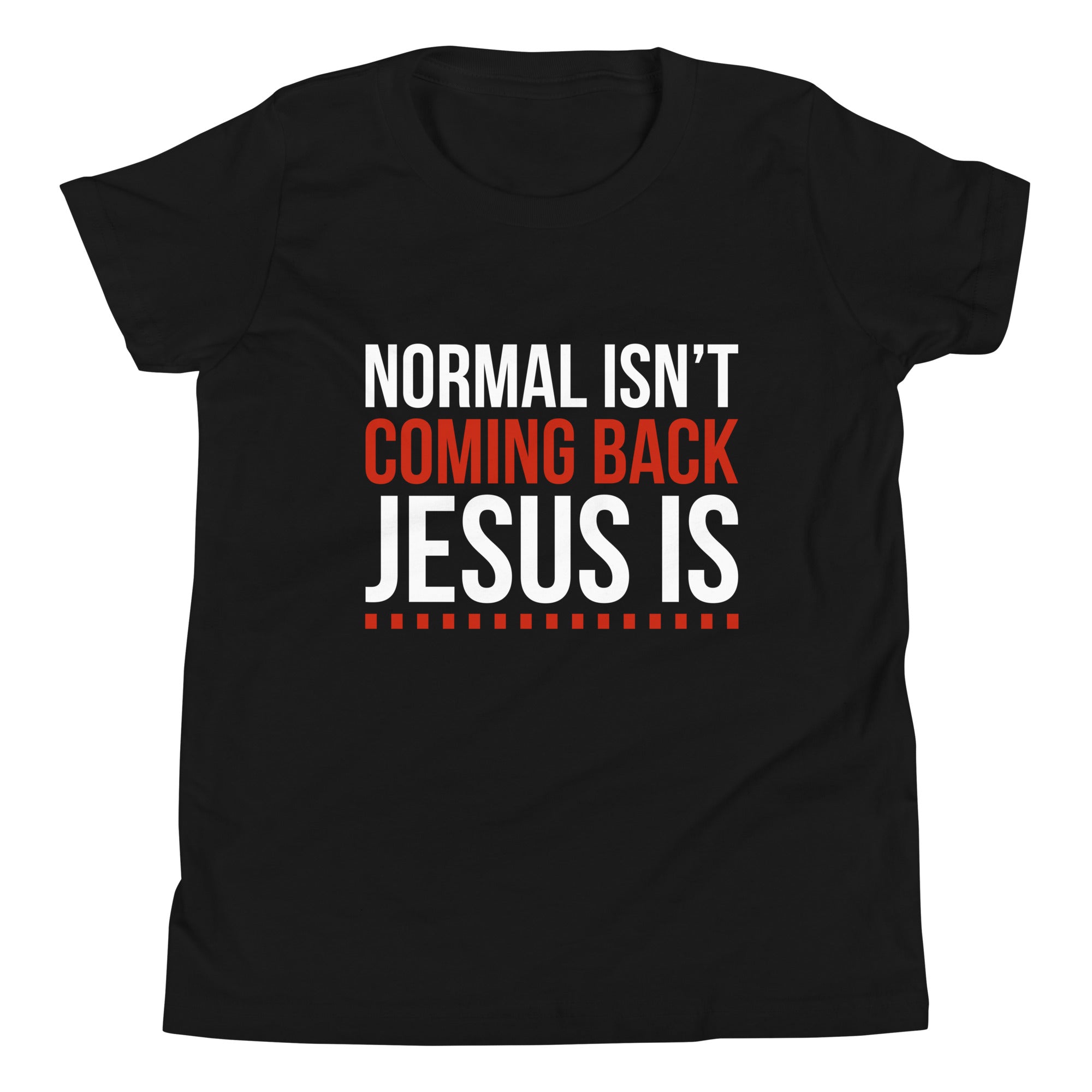 NORMAL ISN'T COMING BACK JESUS IS KIDS FRONT AND BACK T-SHIRT