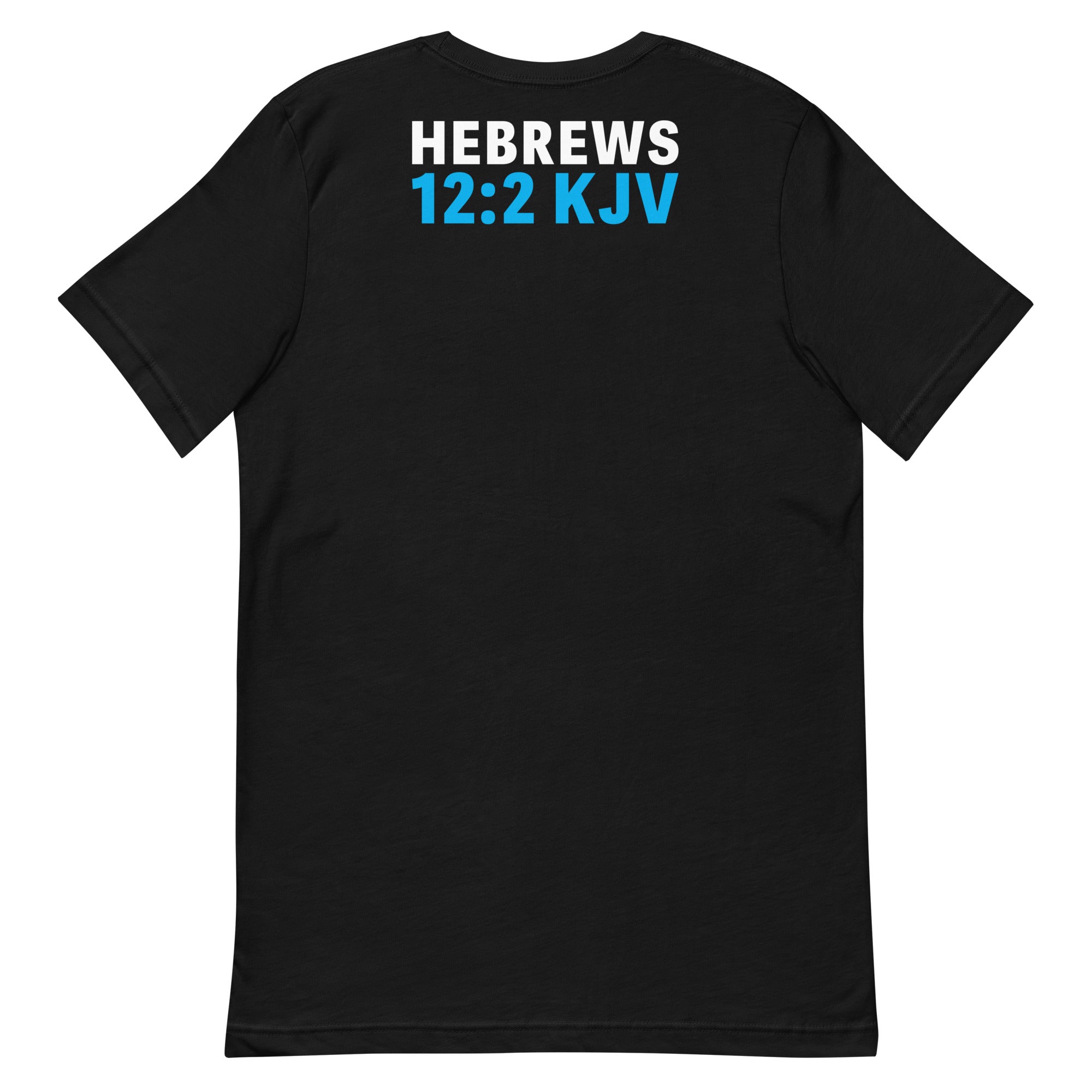 A bold two-sided design with the front declaring “It’s All Jesus” in a striking mix of black and bright blue typography, while the back features the scripture reference “Hebrews 12:2 KJV.” This design centers believers’ focus on Christ as the author and finisher of their faith, serving as a powerful reminder that everything begins and ends with Him. Its clean yet impactful style makes it both inspirational and visually striking for those who want to display their devotion.