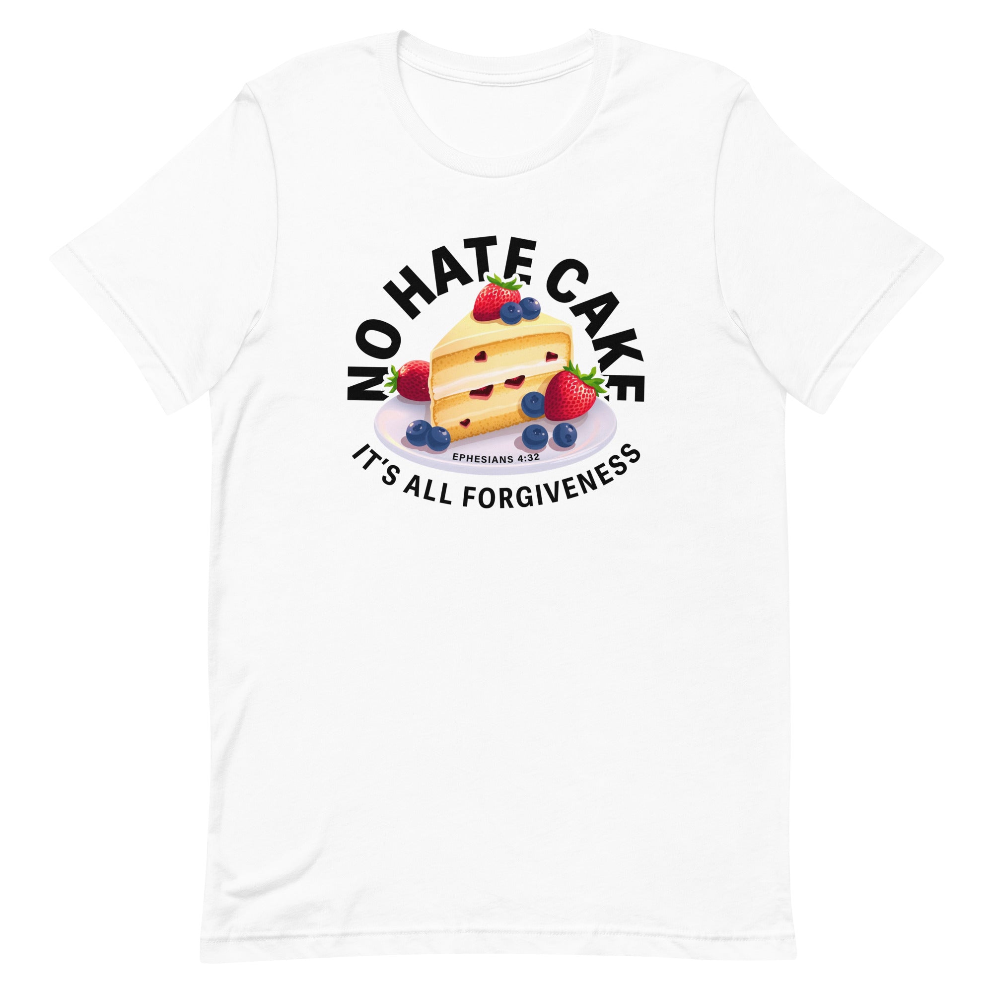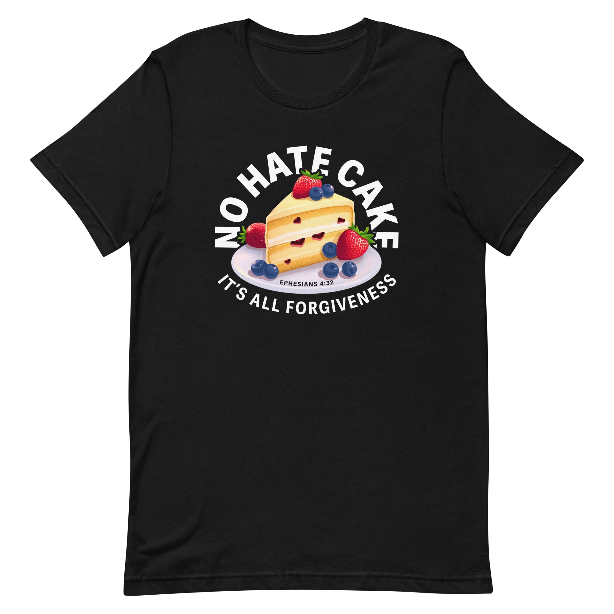 A playful and uplifting Christian artwork featuring a rich slice of cake topped with bright strawberries and blueberries, surrounded by bold lettering that highlights a message of kindness and forgiveness inspired by Ephesians 4:32. A cheerful and meaningful design perfect for spreading positivity and faith.