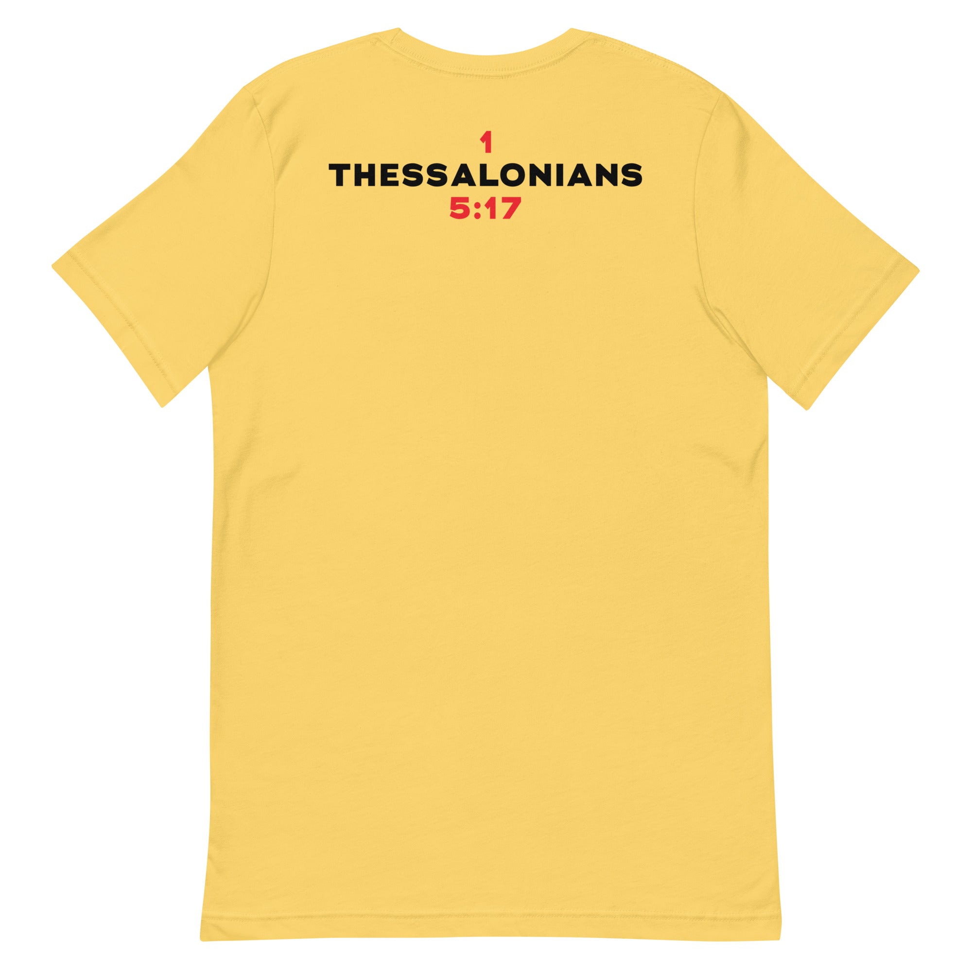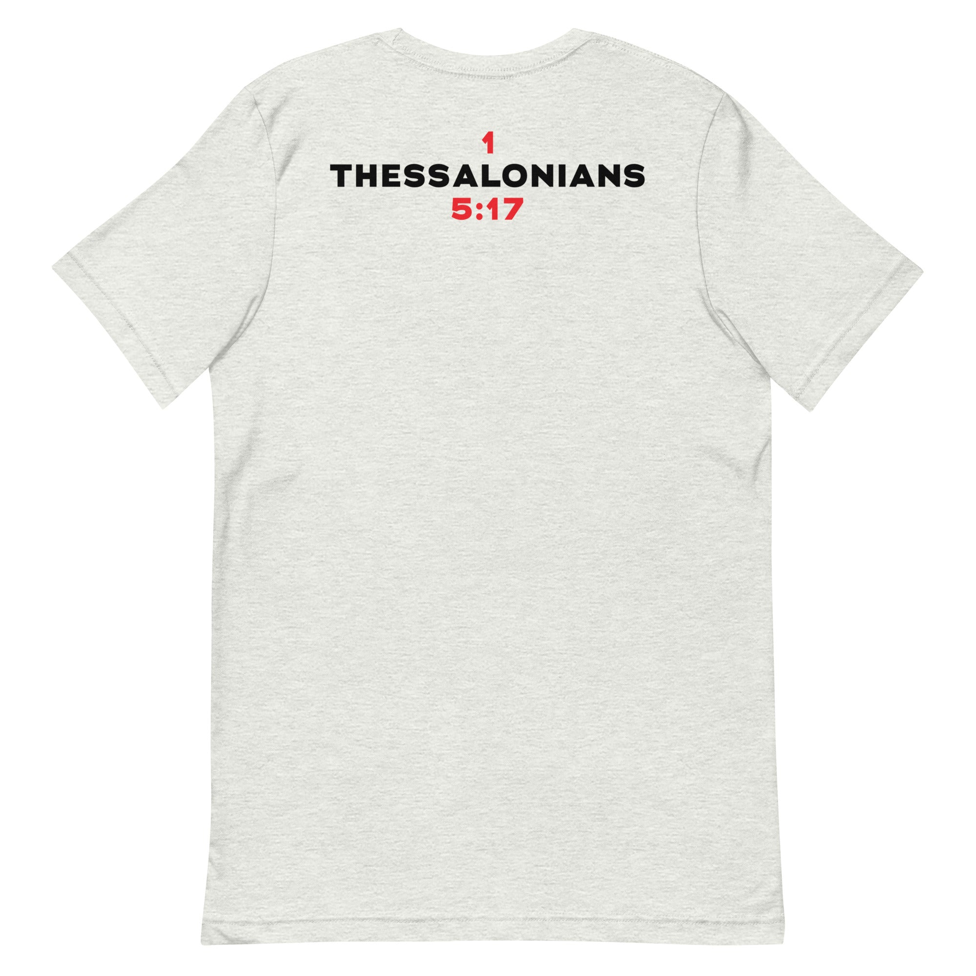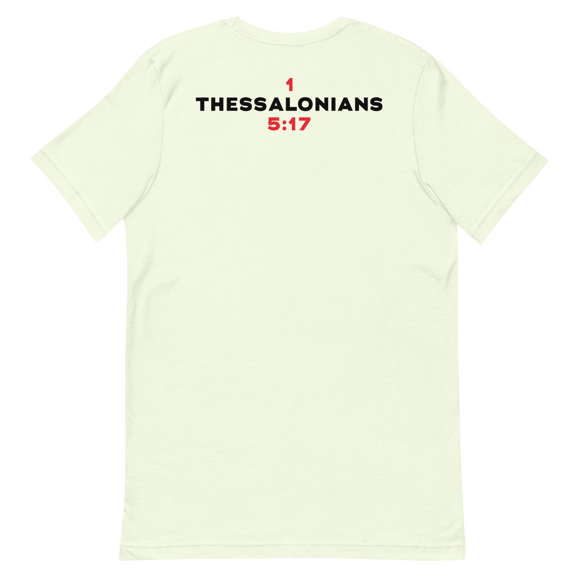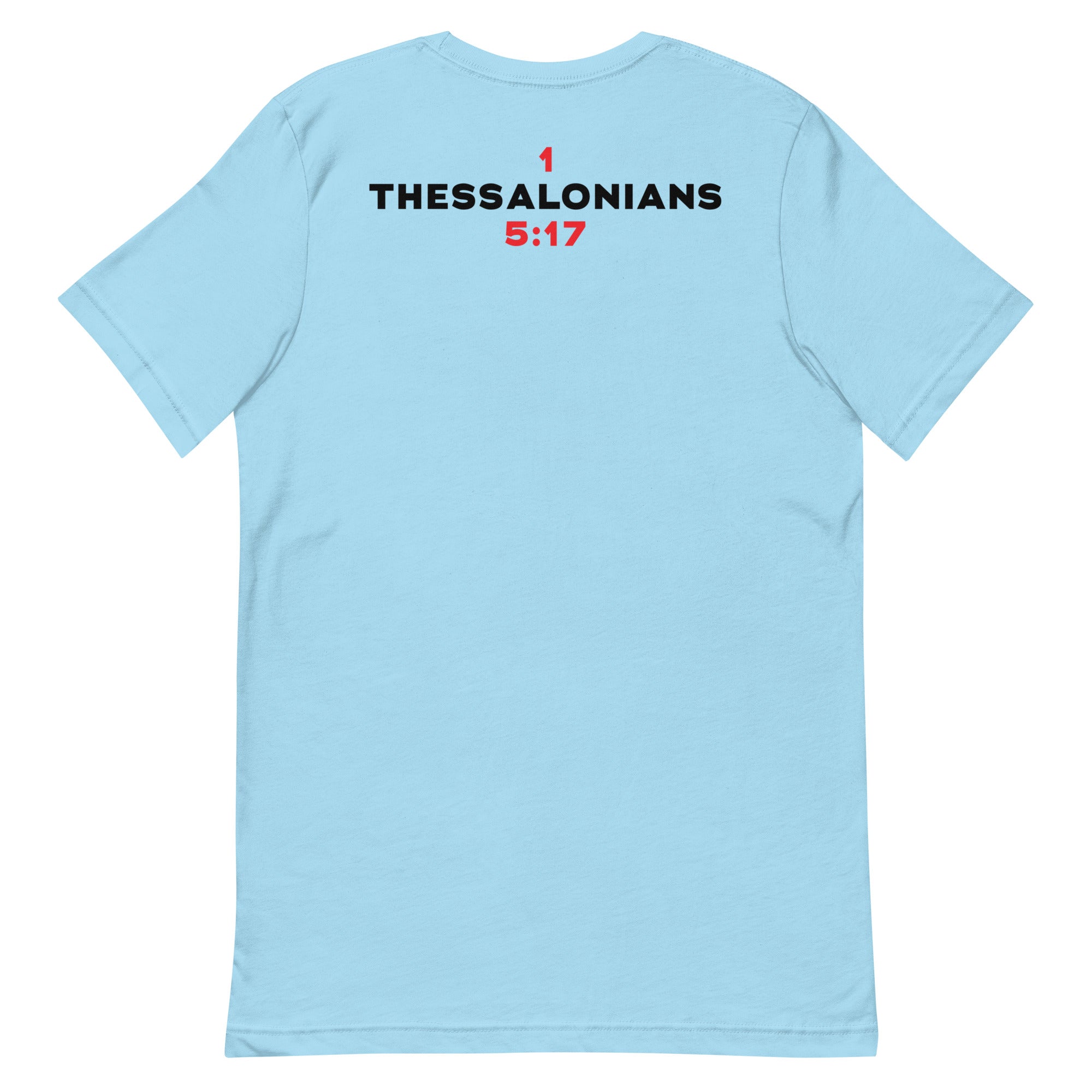 This bold red and black design declares “Prayer Life On Fleek” with an energetic and modern style. The verse reference, 1 Thessalonians 5:17 (“Pray without ceasing”), reinforces the call to live in constant communion with God. The youthful and trendy wording bridges faith and culture, making it a powerful reminder that prayer isn’t outdated—it’s the foundation of a strong walk with Christ. Wearing this design inspires believers to proudly show that prayer is central to their lives and encourages others to see prayer as both vital and vibrant.