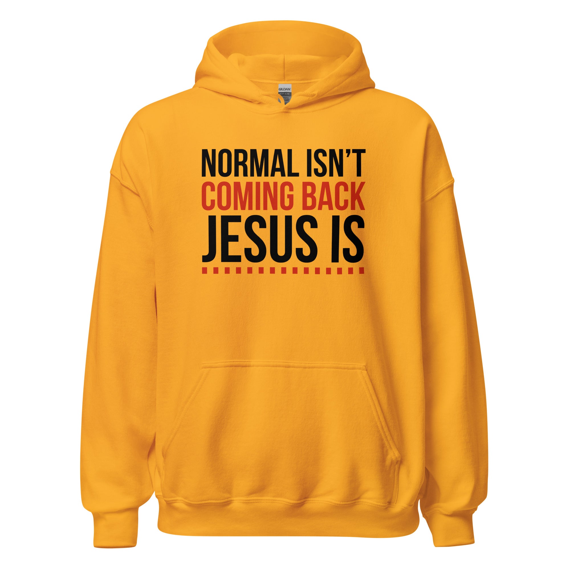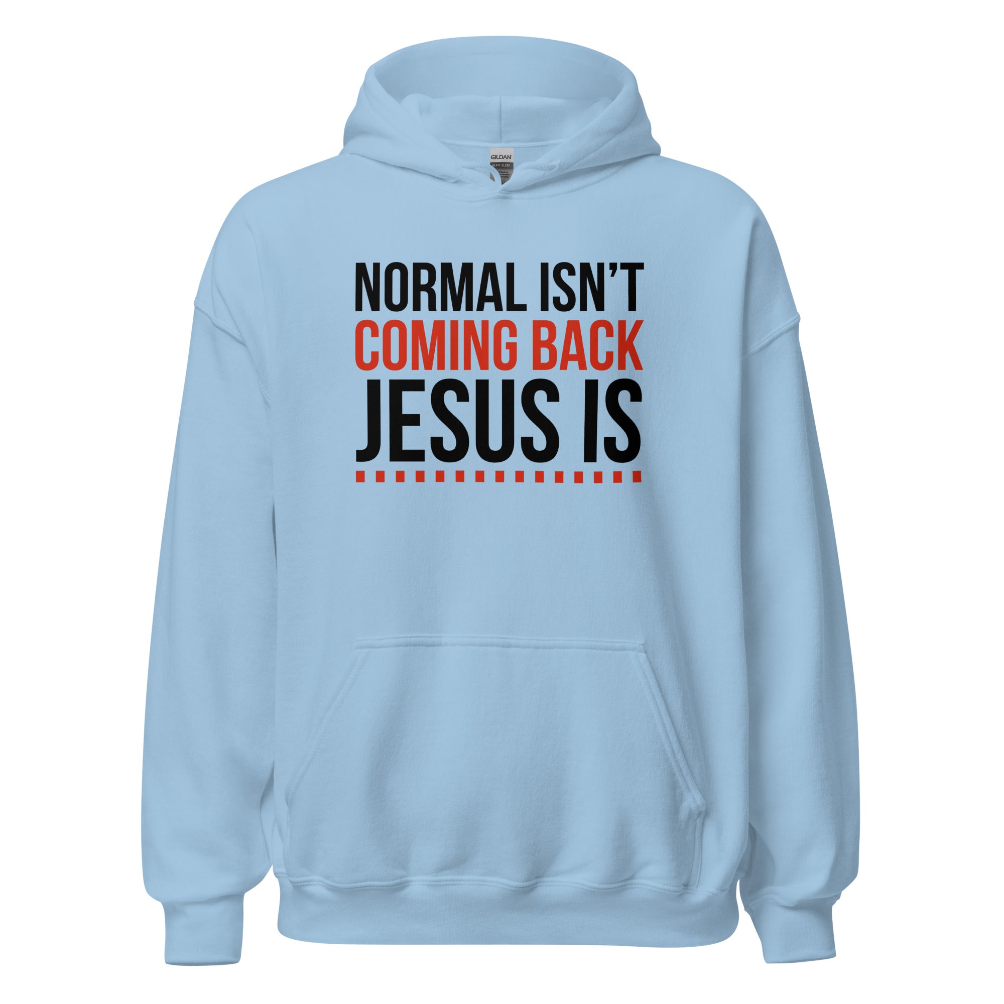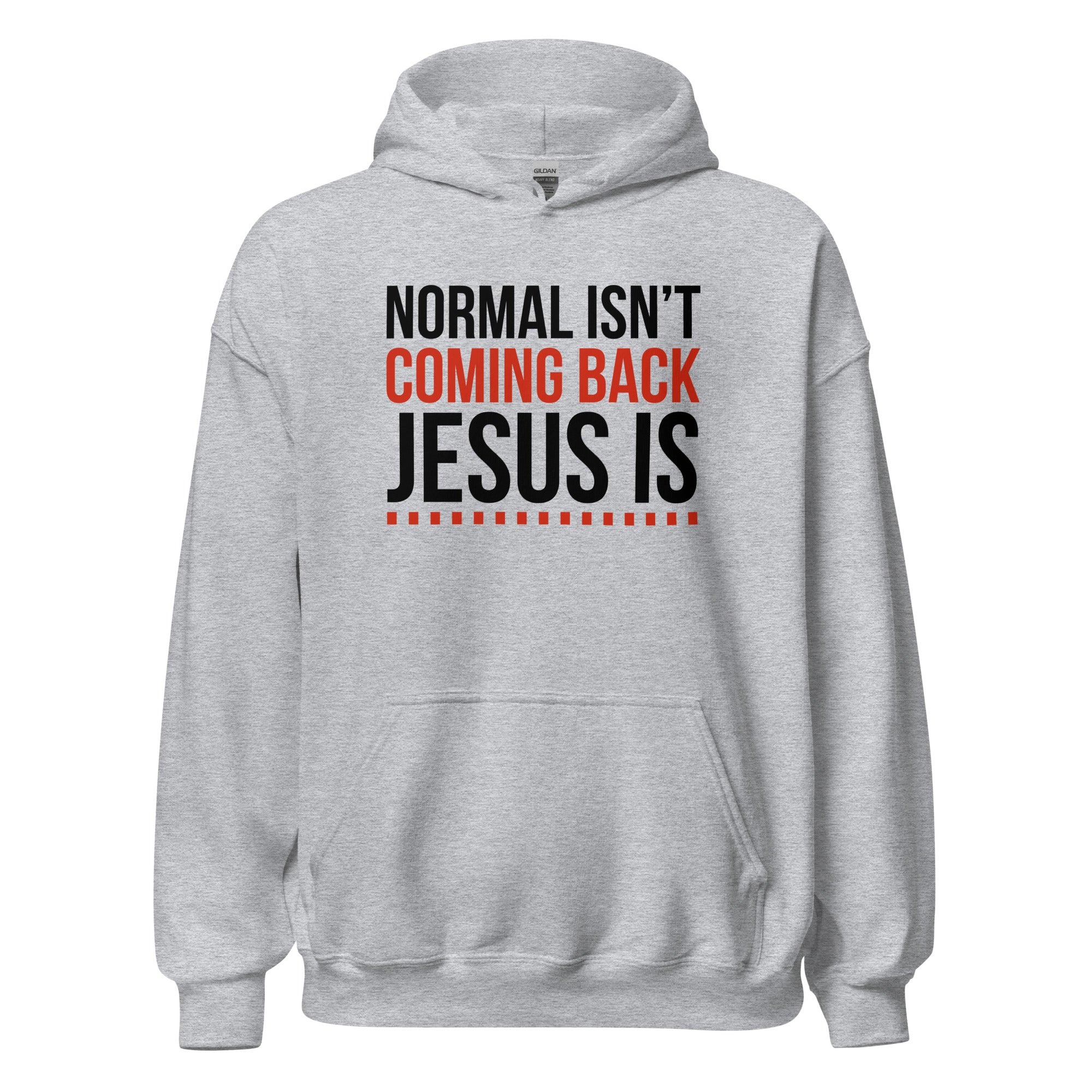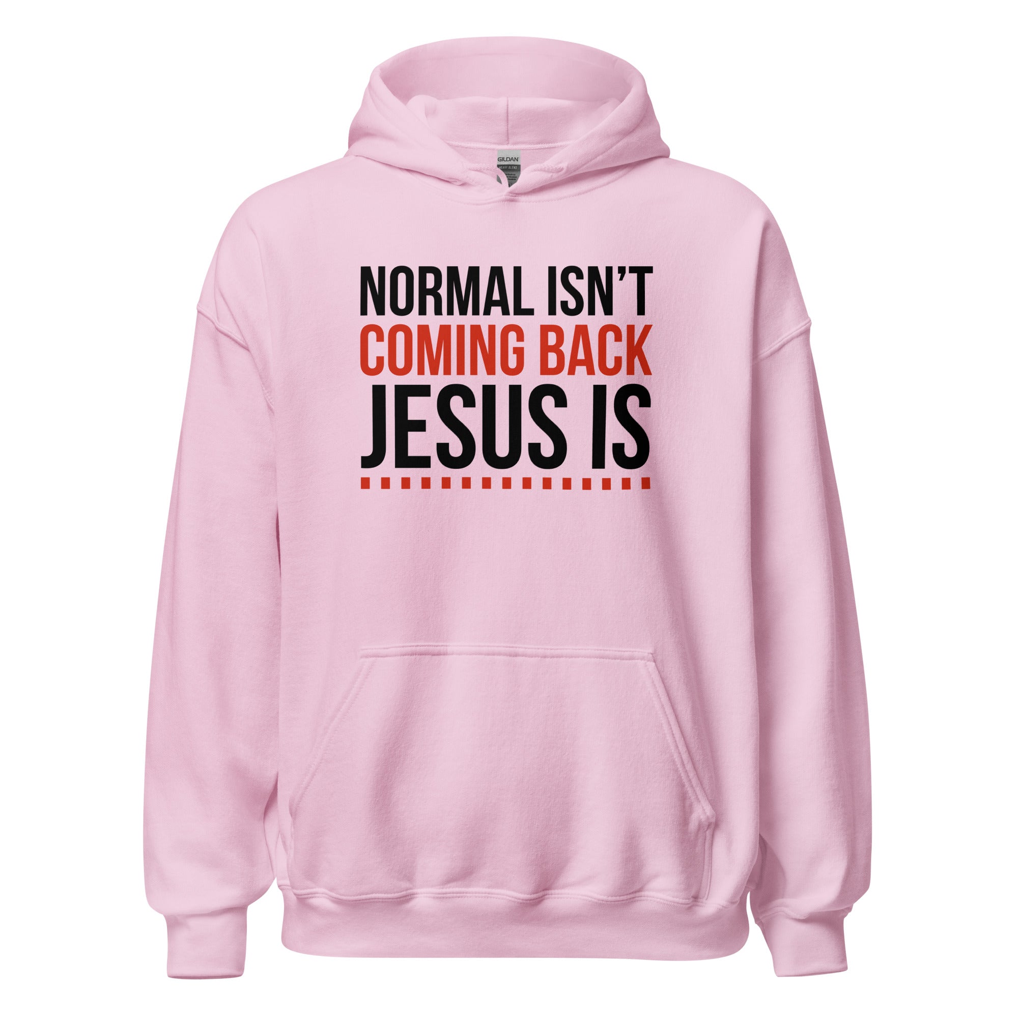 NORMAL ISN'T COMING BACK JESUS IS WOMENS FRONT AND BACK HOODIE