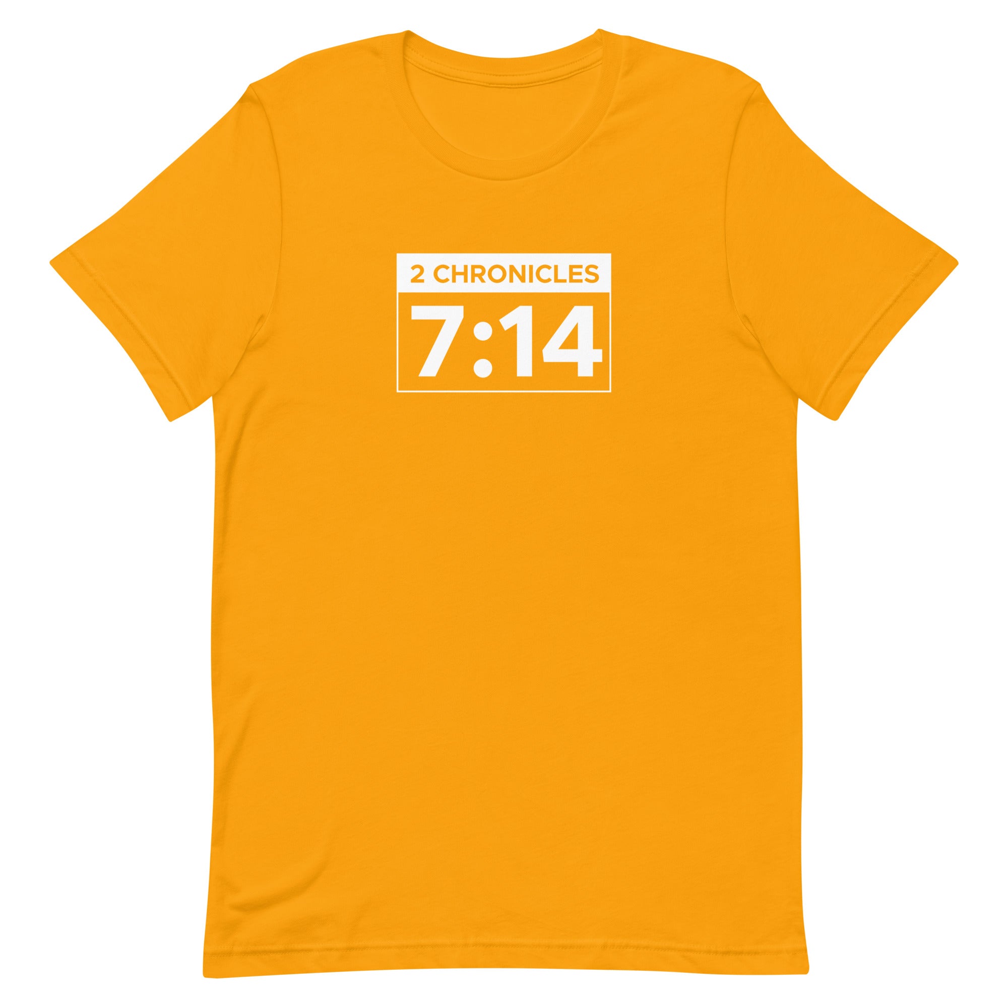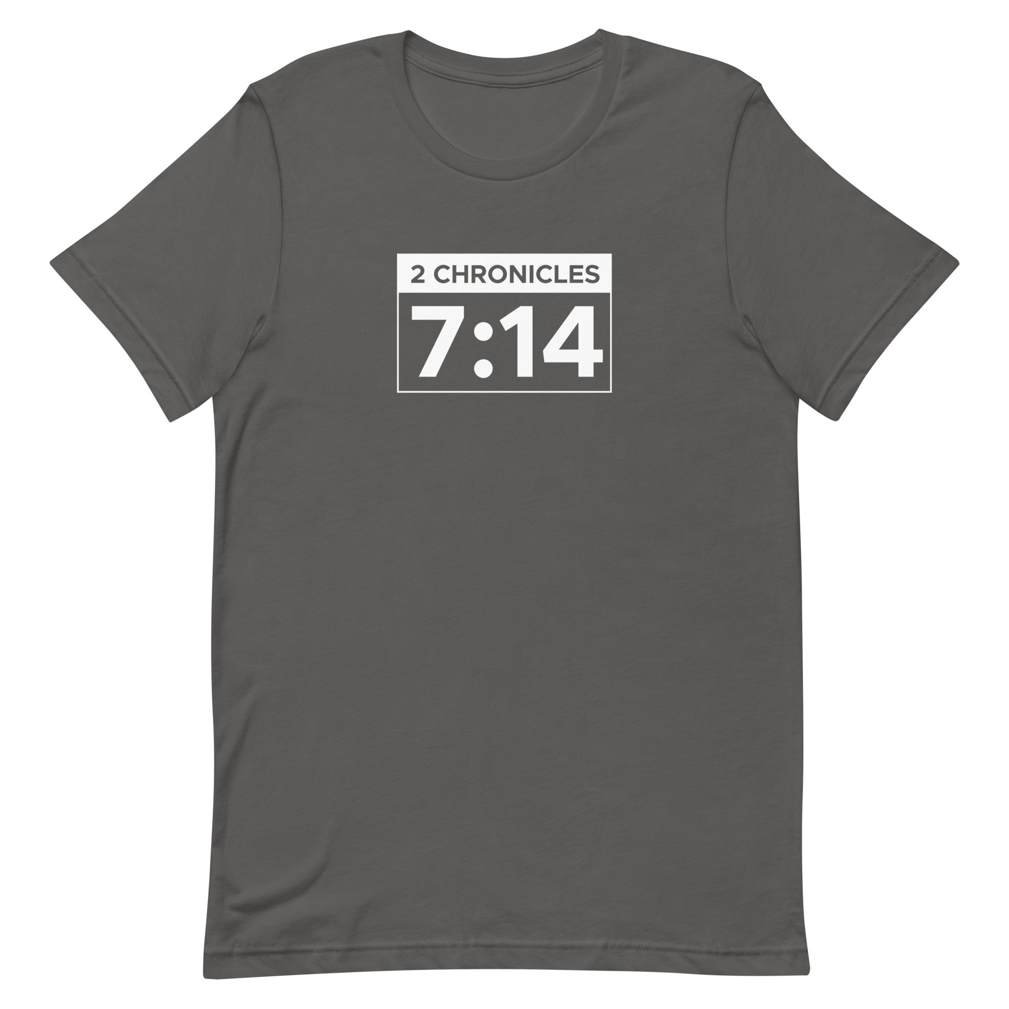 A bold and minimal Christian design featuring the Bible reference 2 Chronicles 7:14 in clean white typography framed by a rectangular outline, creating a striking contrast against the dark background. This impactful design serves as a reminder of prayer, humility, and seeking God’s face, making it a meaningful expression of faith for believers.