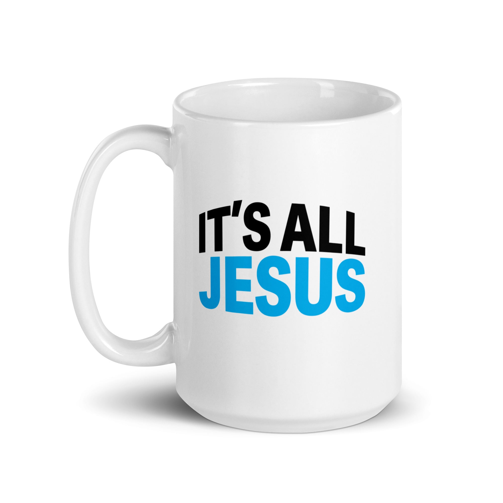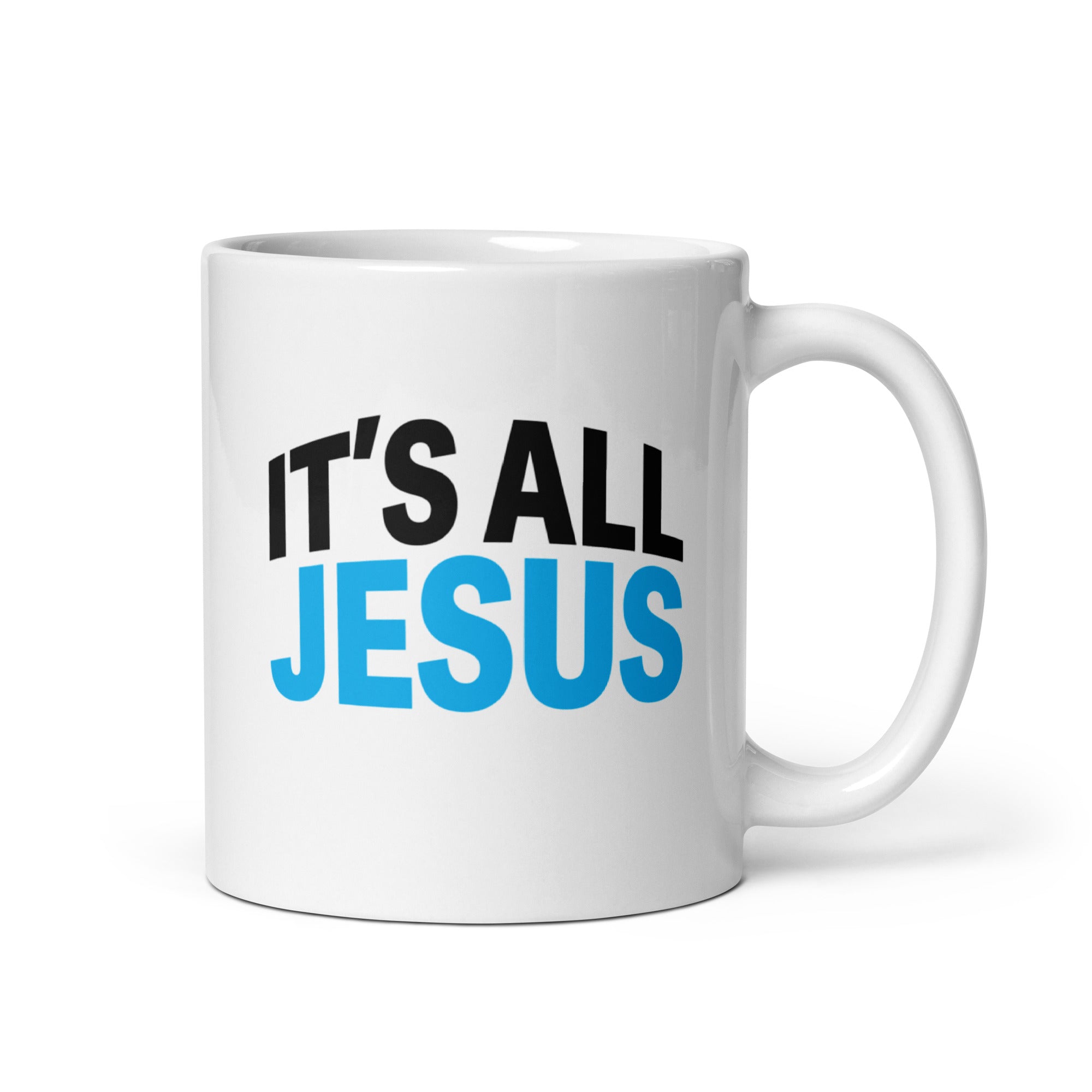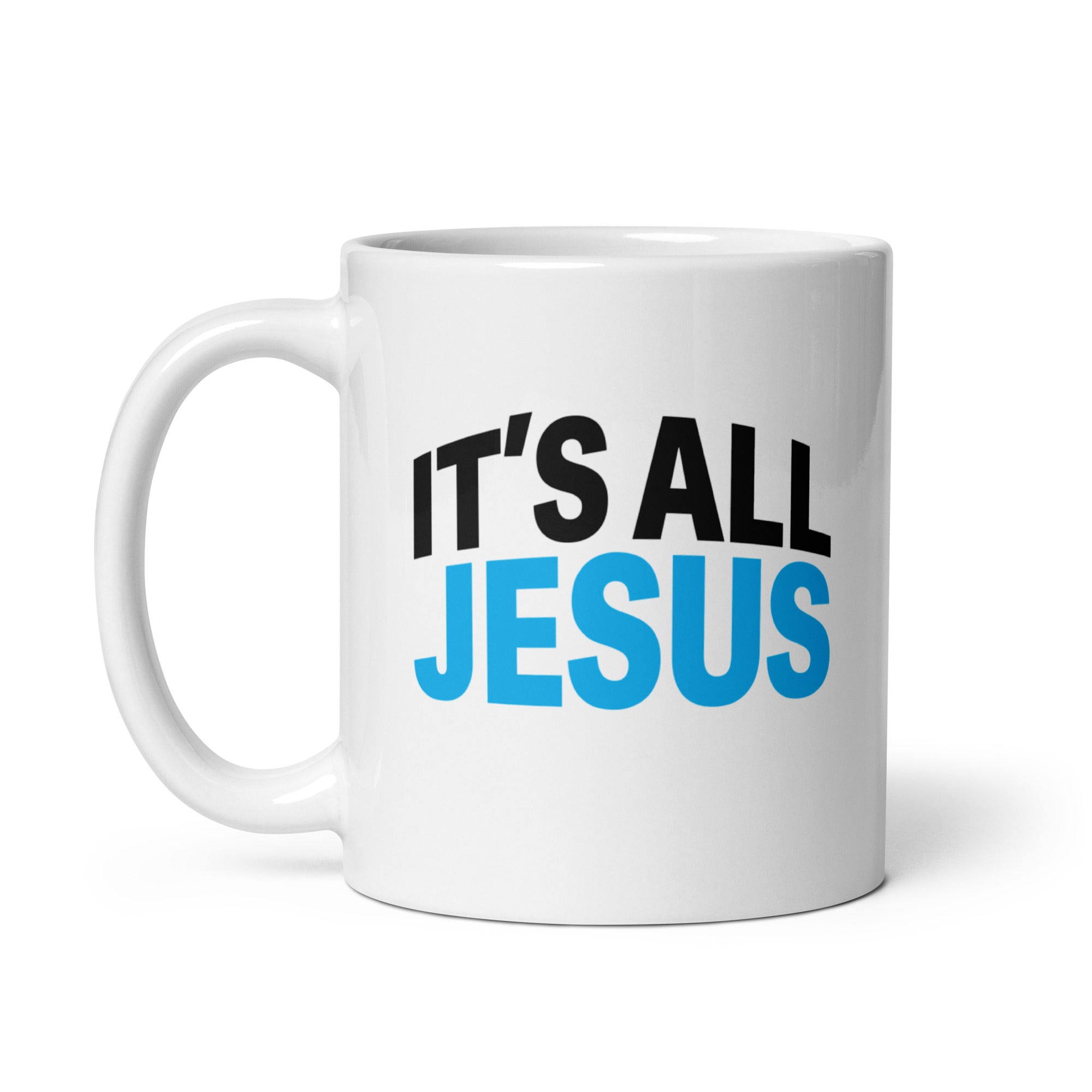 A bold two-sided design with the front declaring “It’s All Jesus” in a striking mix of black and bright blue typography, while the back features the scripture reference “Hebrews 12:2 KJV.” This design centers believers’ focus on Christ as the author and finisher of their faith, serving as a powerful reminder that everything begins and ends with Him. Its clean yet impactful style makes it both inspirational and visually striking for those who want to display their devotion.