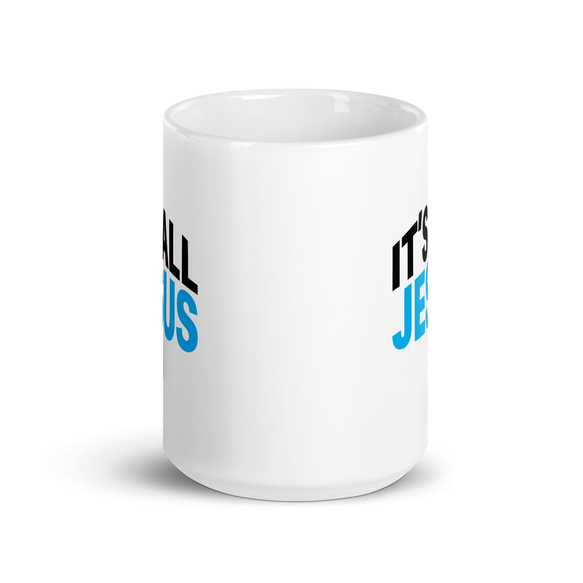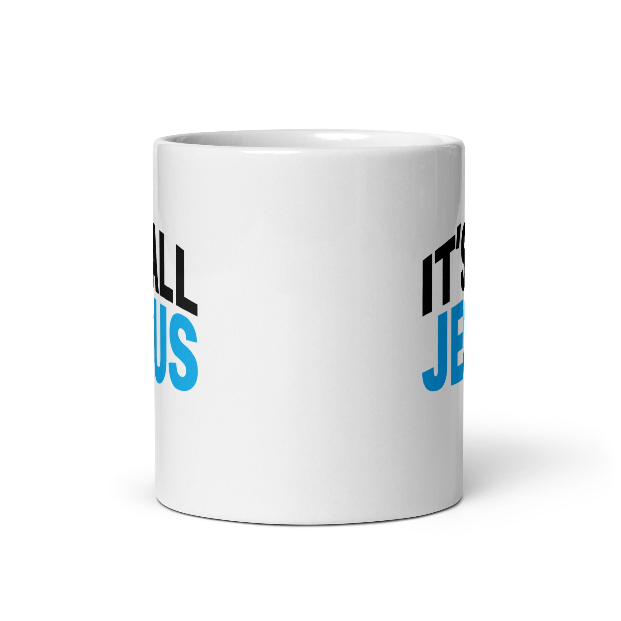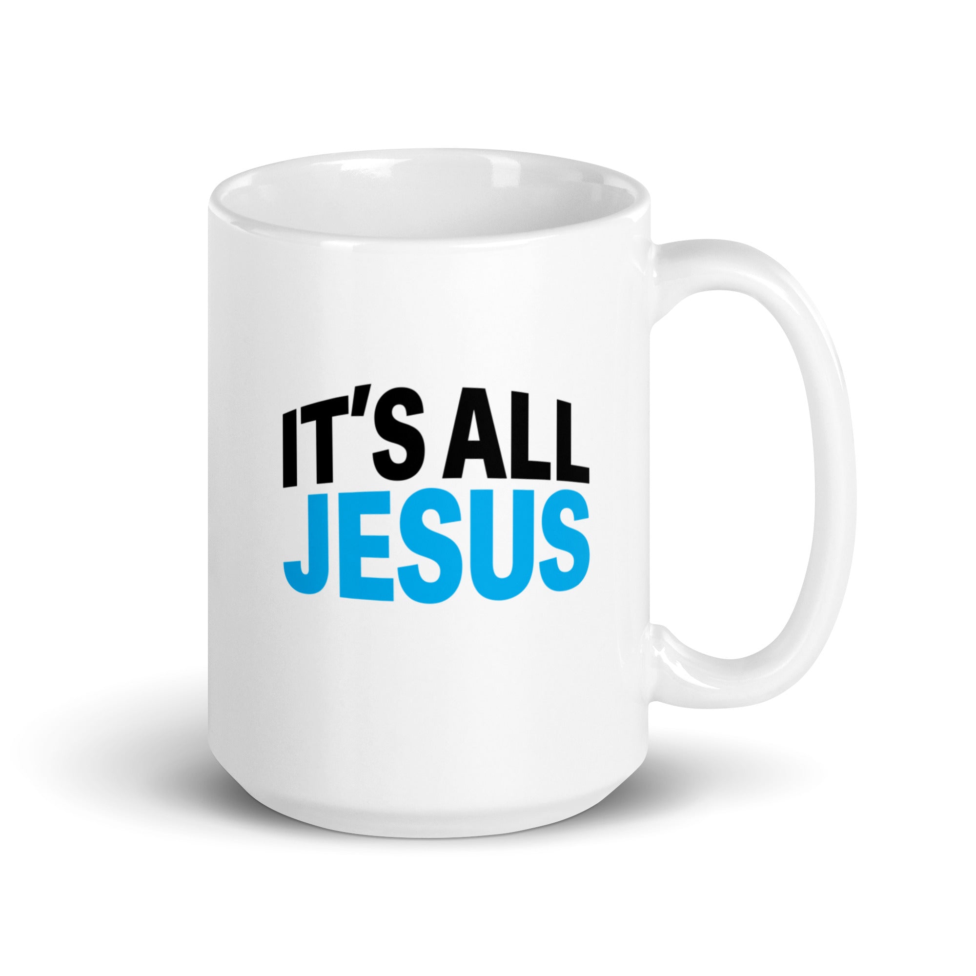 A bold two-sided design with the front declaring “It’s All Jesus” in a striking mix of black and bright blue typography, while the back features the scripture reference “Hebrews 12:2 KJV.” This design centers believers’ focus on Christ as the author and finisher of their faith, serving as a powerful reminder that everything begins and ends with Him. Its clean yet impactful style makes it both inspirational and visually striking for those who want to display their devotion.