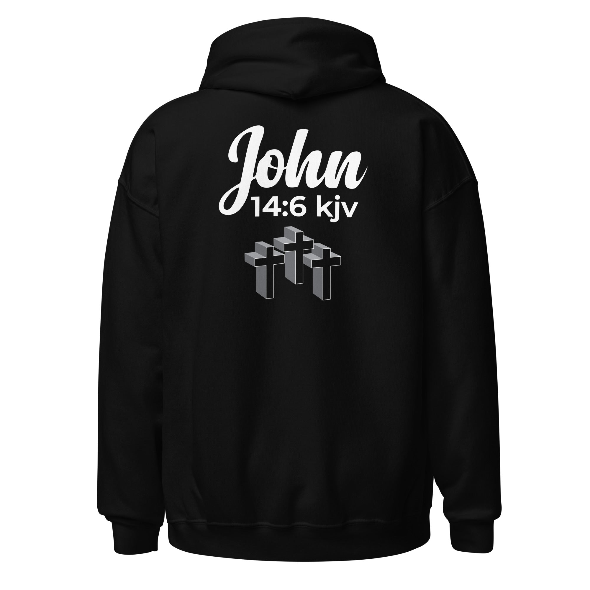 A powerful two-sided design with the front displaying the phrase “Only 1 Way 2 God” accented by a nail and red mark symbolizing the cross, while the back features “John 14:6 KJV” above three crosses. This design reminds believers of the one true way to salvation, making it both inspirational and deeply meaningful.